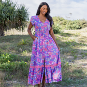 A bold, dark base brought to life with pops of pink and lush green. This print is pure magic. Striking, confident and made to stand out, Available in sizes 6 to 30, because statement style is for everyone.