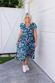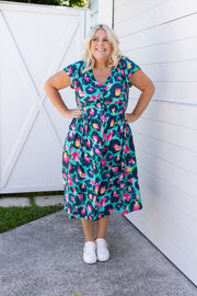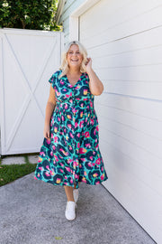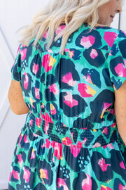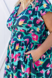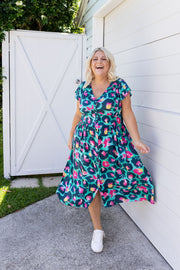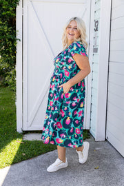 Aurora Midi Dress in Green Leopard by Kasey Rainbow