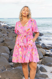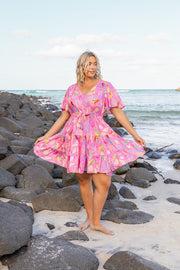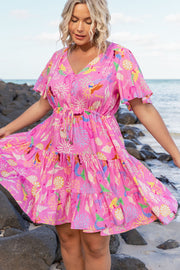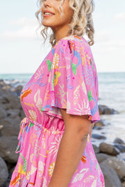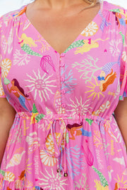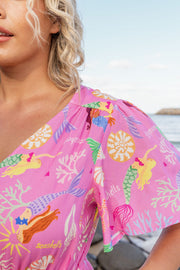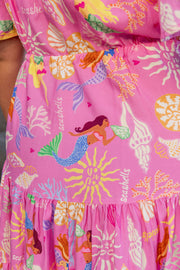 Pink base featuring colourful mermaids, seashells, corals, suns, and playful ocean motifs throughout.