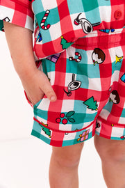 Kids Elves Shirt & Shorts Sleepwear Set in Christmas Picnic by Kasey Rainbow