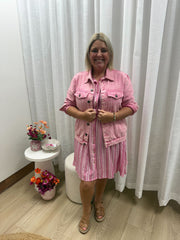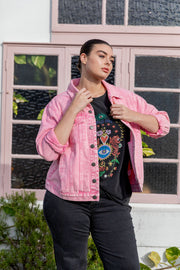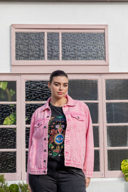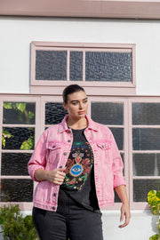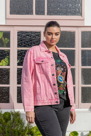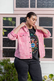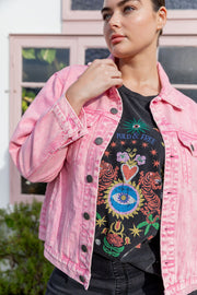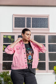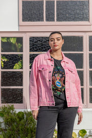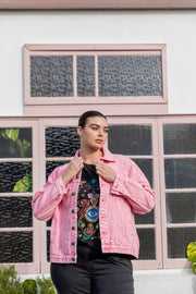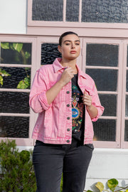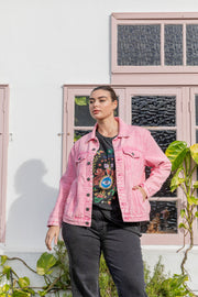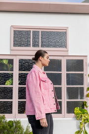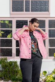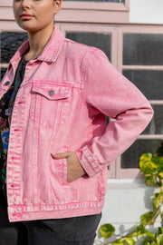 Hayden Boyfriend Denim Jacket in Pink Wash