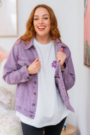 Hayden Boyfriend Denim Jacket in Washed Purple