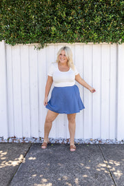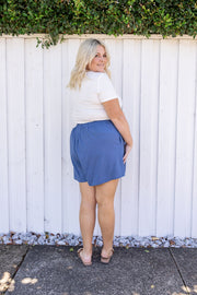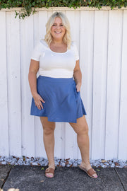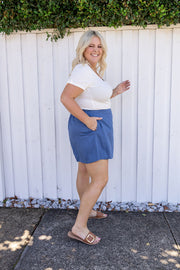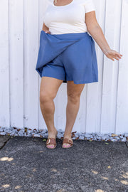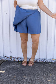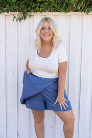 Samara Linen Blend Skort in Denim Blue