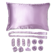 Create & save your curls minus the heat with our Heatless Style Kit. This ultimate heatless satin styling kit comes with everything you need for heat-free styling, ensuring you achieve beautiful, bouncy curls without any heat damage. The kit includes a luxe toiletry bag for easy storage and travel, a satin pillowcase to reduce friction and frizz while you sleep, and four satin rods with matching caps for creating perfect curls. Additionally, a large rod is included for those voluminous, glamorous waves, along with two scrunchies and a claw clip to help secure your style in place. With our Heatless Style Kit, you can wake up to gorgeous, salon-quality curls every day. Embrace a healthier hair routine and look fabulous effortlessly.